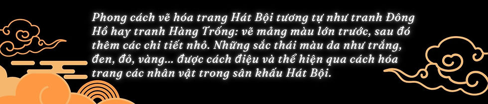 Có thể nói trong vô vàn các yếu tố sắc màu nhằm tạo nên một vở Hát Bội đầy xúc cảm, trang phục và hoá trang có thể được xem là yếu tố đầu tiên trong những mảnh ghép ấy. Trang phục và hóa trang trong Hát Bội không chỉ là những yếu tố thẩm mỹ, mà còn mang ý nghĩa biểu tượng quan trọng, thể hiện tính cách và số phận của nhân vật qua màu sắc và hình họa.